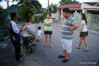 Well, at daughter Jaclyn’s house, we did even better than putting these two things together. We called up and had a chap come over and prepare satay right in front of the house. It was very inexpensive and we enjoyed a grand meal of chicken satay when he was done. As you can tell from the photos, not only did he cook some tasty satay, he provided a great show for the hungry spectators as well.
