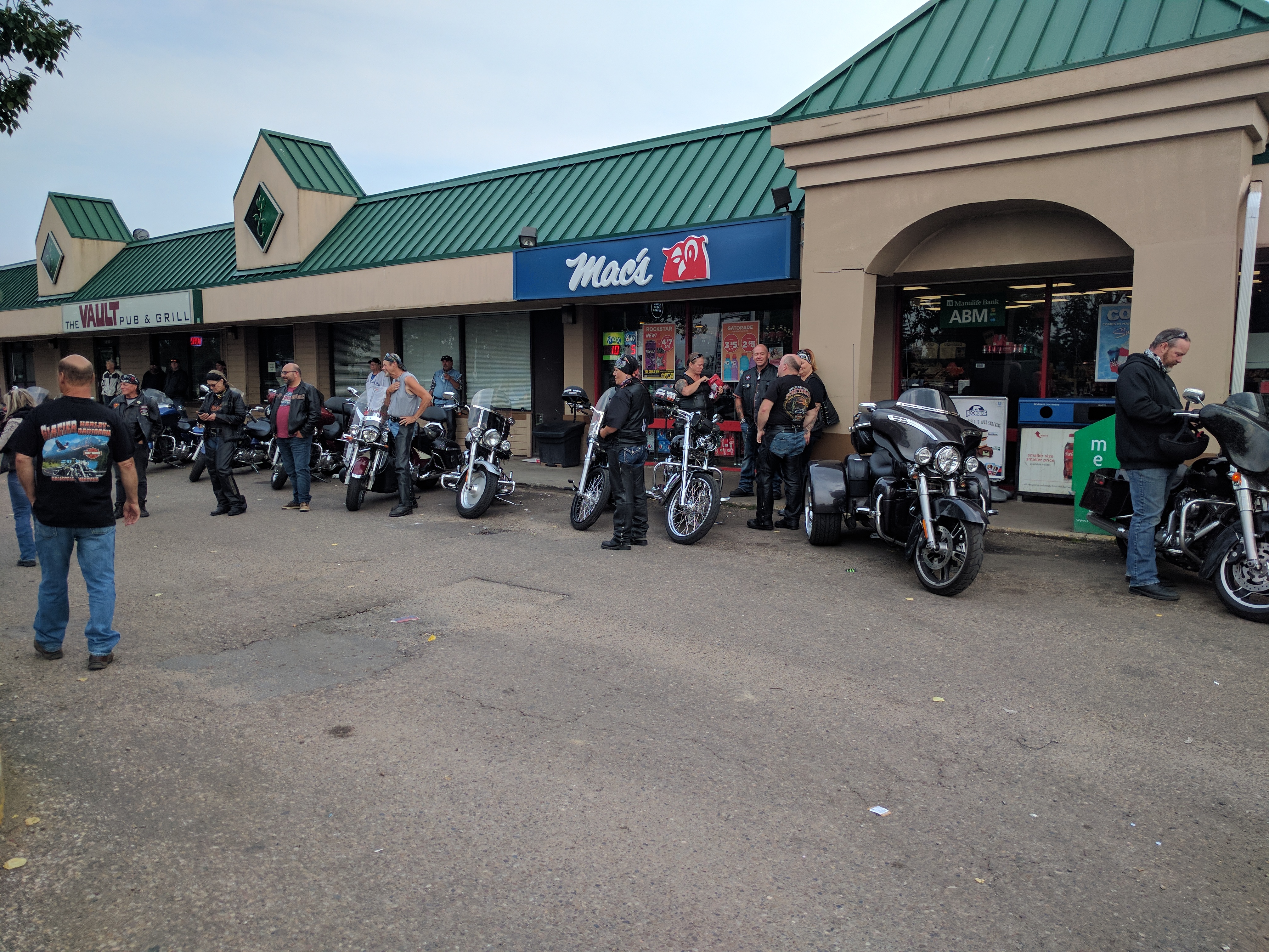 Jaxon had a wish to ride on a motorcycle. A chap by the name of Trevor learned of this and organized this mid-week ride. Overall there was about 60 bikes involved. A group of bikers came in from Camrose, including Tara with her trike. And that’s where Jaxon rode, like royalty almost, on her trike with his oxygen strapped on the back.